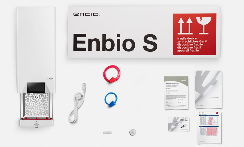 Enbio S izpolnjuje najvišje zahteve razreda B in je certificiran medicinski izdelek. Njegovo upravljanje je igrivo enostavno. Edinstven dizajn pritegne pozornost. Prejel je nagrado “Red Dot design Award”. S svojimi merami 25 cm širine, 16 cm višine in 56 cm dolžine je trenutno najmanjši avtoklav na trgu. ENBIO S je izdelan v Švici po strogih merilih kakovosti.
